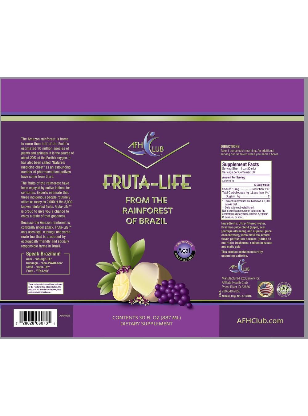 Açai is the only super berry on the market that has everything that you need, naturally from only the berry itself. It packs Vitamin B1, B2, B3, Vitamin E, Vitamin C, Phosphorus, Calcium, Potassium, Fiber, Proteins, good fatty acids such asOmega 6 and Omega 9.