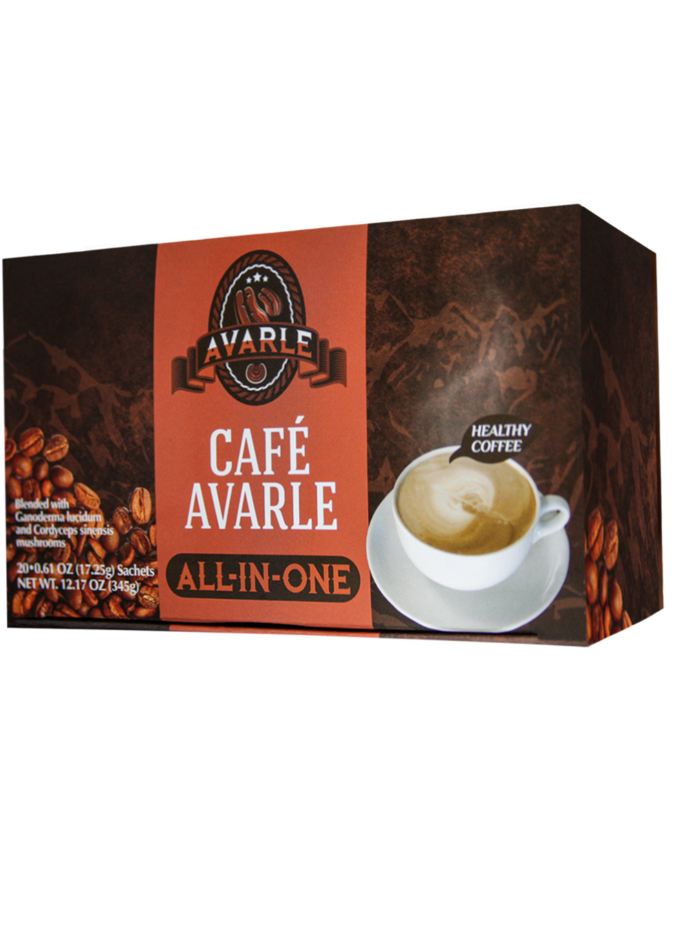 CAFÉ AVARLE ALL-IN-ONE w/GANODERMA, CORDYCEPS, CREAMER, SUGAR, & XYLITOL